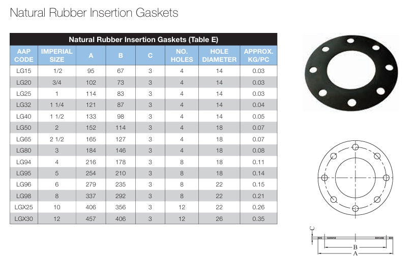 Rubber Gasket to Suit Flanges Table E/D